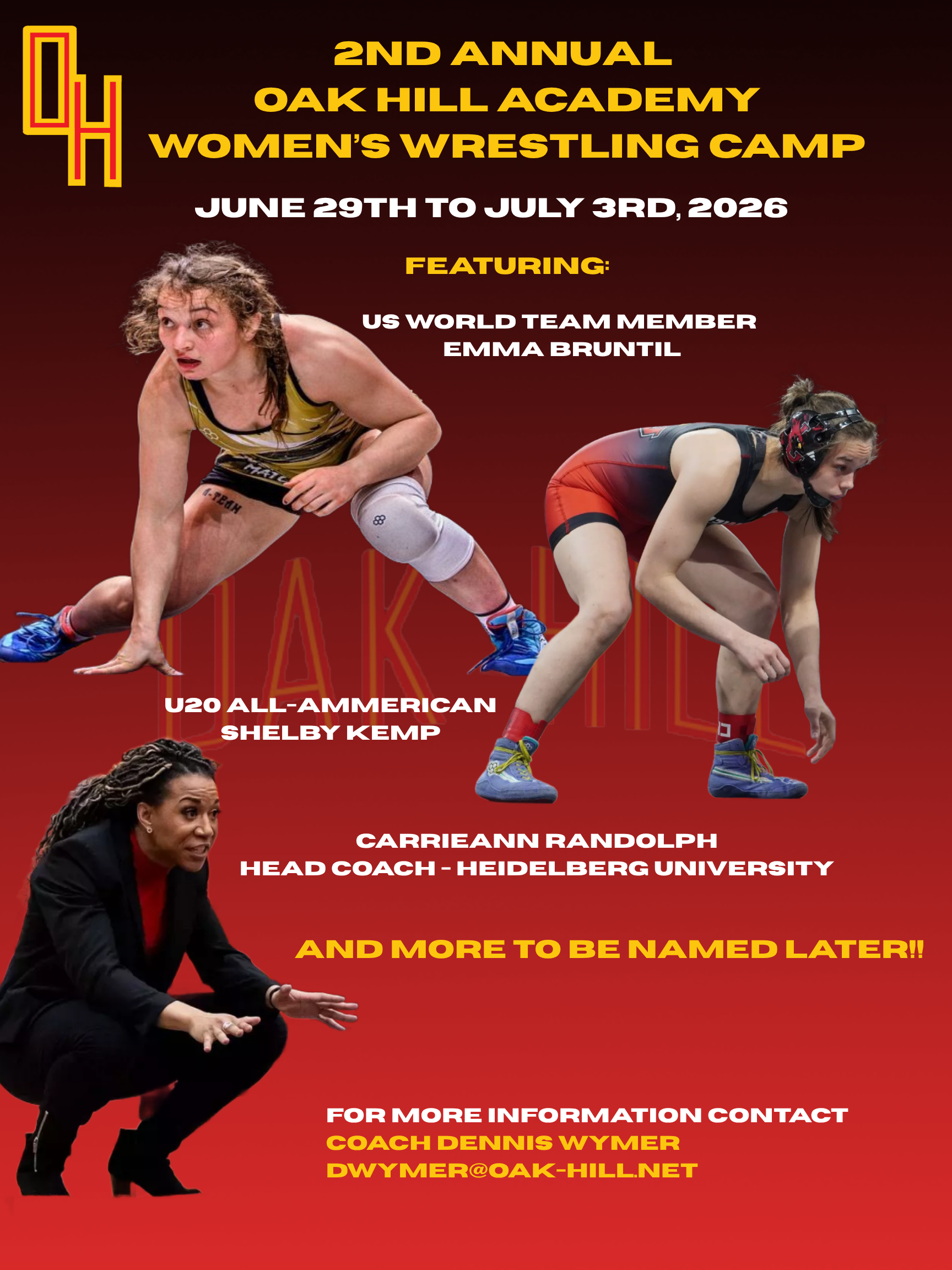 Refund Policy: All requests for refunds must be received by email or fax. All deposits are nonrefundable (NO EXCEPTIONS). If a camper withdraws from the camp for any reason up until 14 days prior to the start of that camp session, tuition will be refunded less the deposit amount. If a camper withdraws after 14 days prior to the start of camp refunds will be considered on an individual basis. If a camper withdraws after 7 days prior to camp NO refunds will be granted. If a camper withdraws from camp for any reason after camp has begun NO refund will be granted. If a refund is granted payment will NOT be processed until after the conclusion of our entire summer camp season. Refunds most likely will NOT be received until sometime in the month of August. Medical and Insurance Info: It is our policy that all camp participants must provide proof of medical insurance. If you cannot provide proof of a current medical insurance policy, you cannot attend any Oak Hill Wrestling Camp. A nurse or trainer will be on duty at all times. Because of the rigorous daily schedule, each camper is encouraged to come to camp in top physical condition. USA Wrestling Cards: All campers are required to have a USA Wrestling Competitors Card. Please have the card with you at the camp check-in. Our staff is dedicated to helping you get better and having a great camp experience. Please take advantage of their knowledge and experience. Parents are welcome to visit during the week. We are truly excited that you have chosen to attend our camp on the Hill and we look forward to helping you in any way possible.